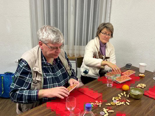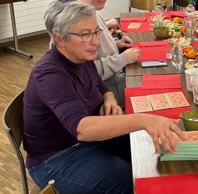 Nach und nach treffen Vereinsmitglieder ein, dazu viel selbstgemachtes ob Salate, Desserts oder das legendäre Lotto Material vom Dänu, respektive der Kirchgemeinde Johannes und Markus. Schön war, dass sich viele jüngere und Neuzugänge am "Chlousehöck" beteiligte. Nach dem guten Essen, starteten wir mit dem Lotto. Es wurde viel gelacht und diskutier, wer ist der erste der "Karton" ruft, ist es wieder David...... Alle hatten den Plausch. Nach den eifrigen Lottogängen, folgte das grosse Dessertbuffet. Mmmmhhhhh. Schön war der Abend, fast wie eine grosse Familie. Das tut gut mit Kollegen/innen eine solchen Abend zu verbringen!