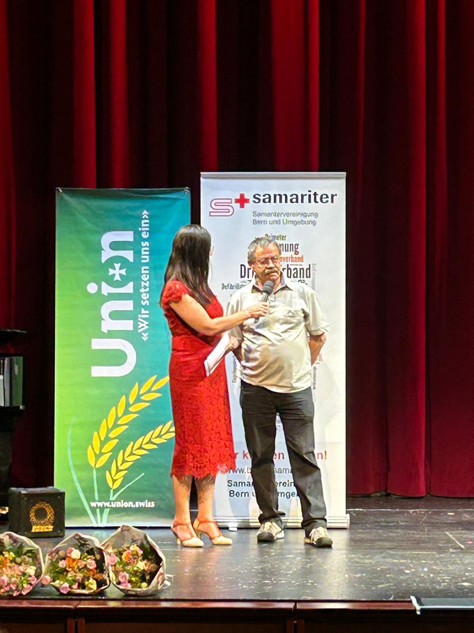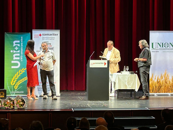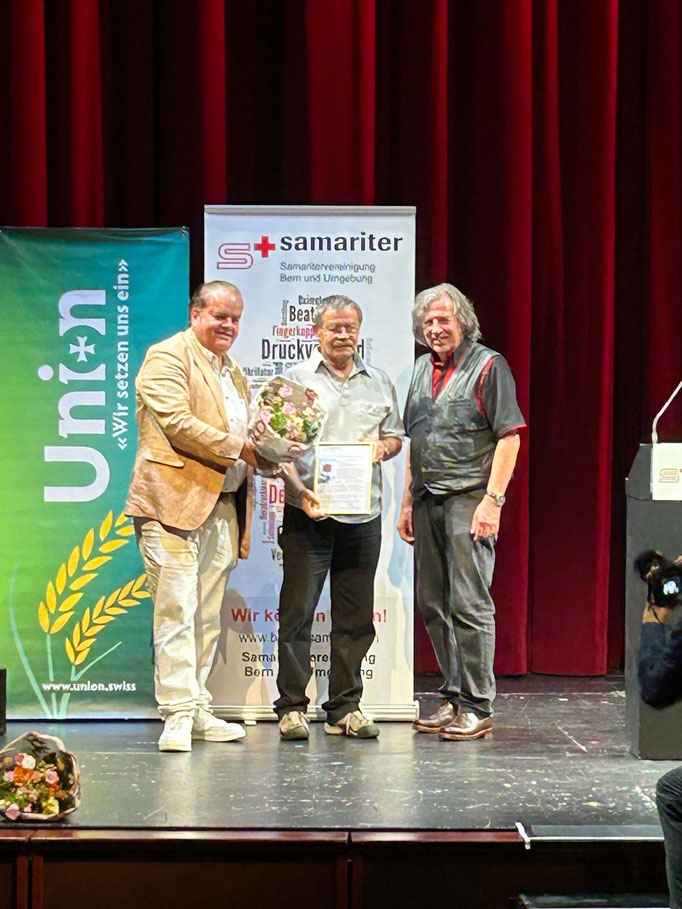 v.l.n.r : Mirjam Hofer 10 Jahre / Franz Ulmann 50 Jahre/ Rosmarie Blatter 55 Jahre / Hansueli Lutz 55 Jahre Samaritertätigkeiten in Bern. Gratulation den Jubilarinnen und Jubilaren.